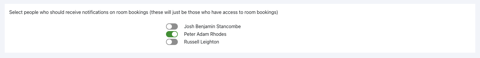 If you're using the embedded Room Booking form, you can now choose people to receive email notifications of new bookings when they are submitted.