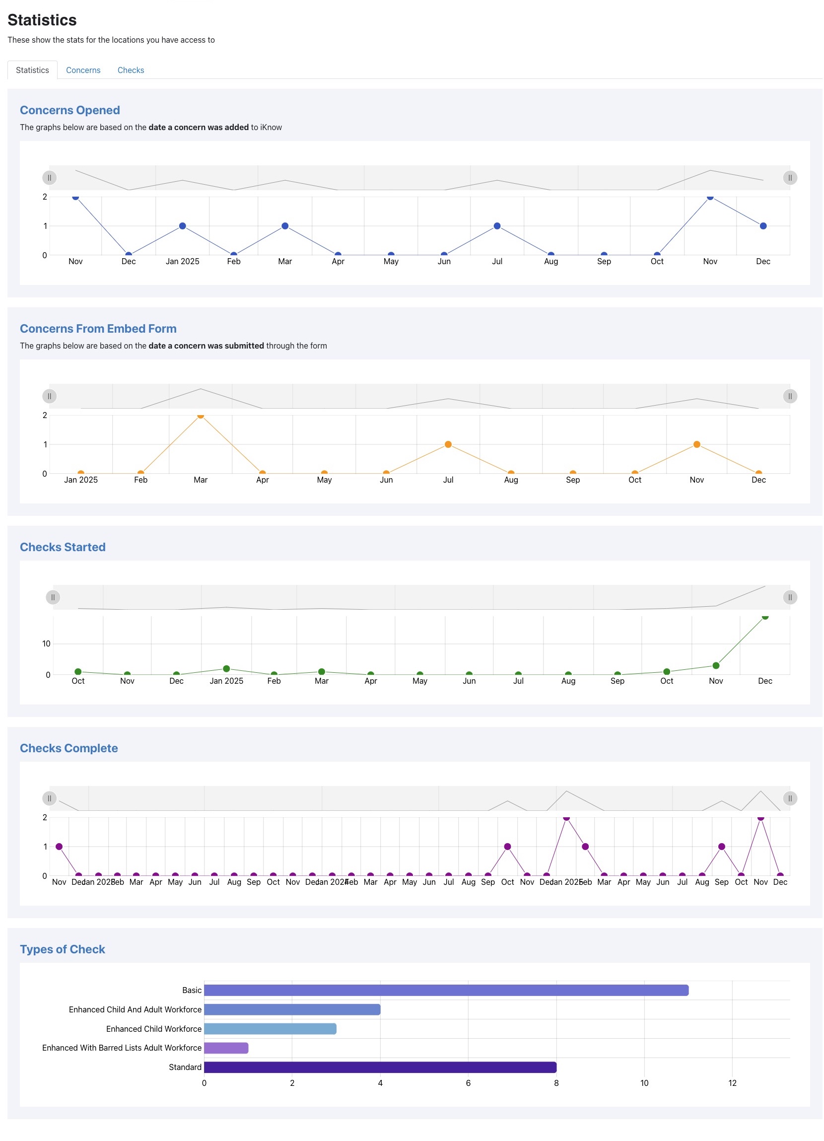 We've added a new section for Statistics, to give you an easy overview of your Concerns and Checks all in one place.